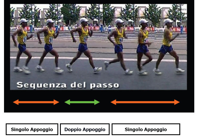7: esempio di marcia con infrazione per flessione; l’atleta 8: esempio di marcia regolare, nella quale l’atleta